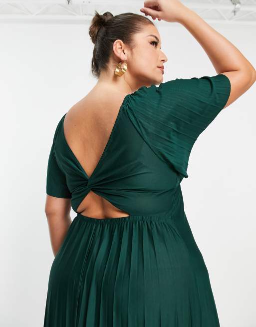 ASOS DESIGN Curve pleated twist back cap sleeve maxi dress in