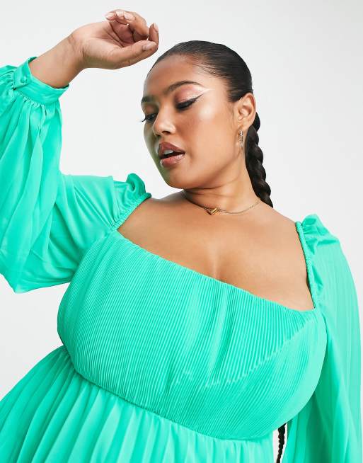 ASOS DESIGN Curve square neck pleated mini skater dress in emerald