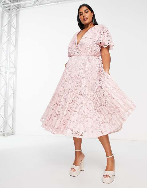 ASOS DESIGN Curve exclusive lace pleated midi dress with tie