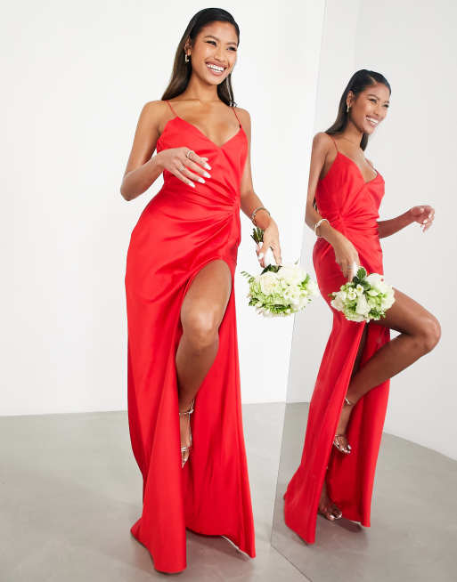 Asos red shop evening dress, ASOS DESIGN Bridesmaid satin cami maxi dress with drape detail in shop