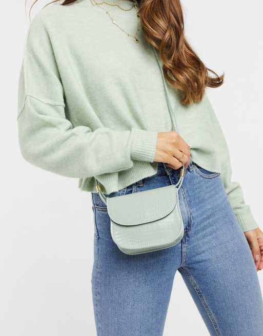 ASOS DESIGN cross body saddle bag in green croc ASOS
