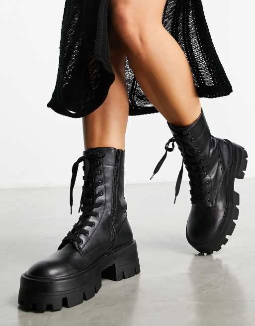 ASOS DESIGN Amaze Schn rstiefel in Schwarz mit dicker Sohle ASOS