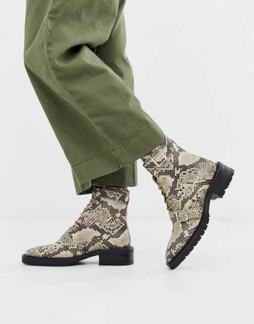 ASOS DESIGN Astrid leather chunky military boots in natural snake
