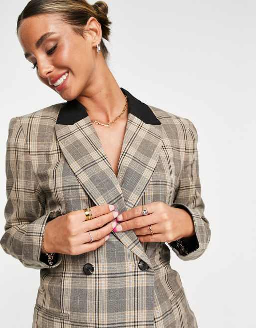 ASOS DESIGN skinny suit jacket in beige and brown check ASOS