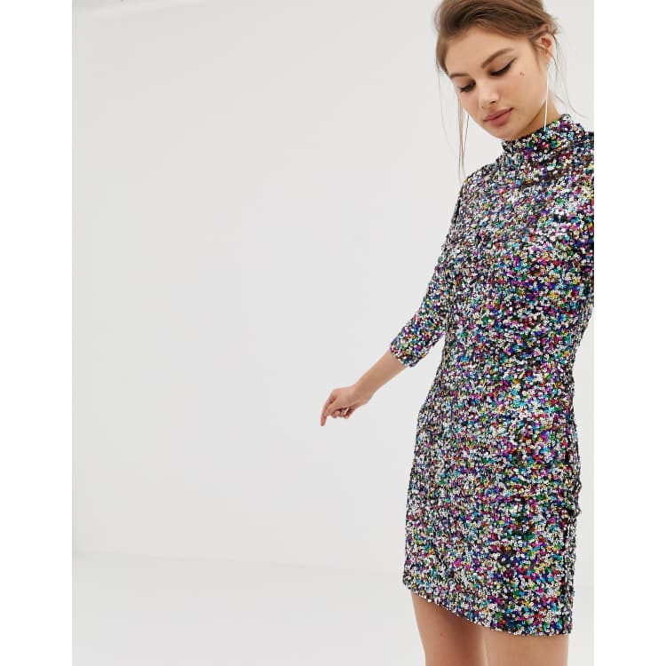 Warehouse shop rainbow dress, Warehouse high neck bodycon dress in rainbow sequin ASOS shop
