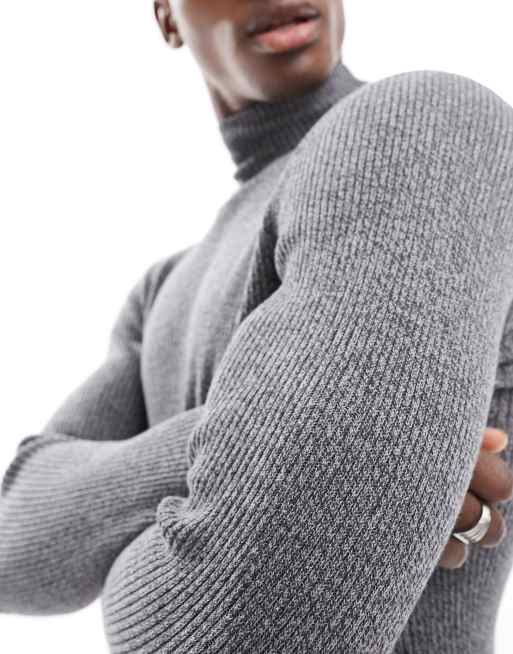 ASOS DESIGN muscle fit turtleneck sweater in light gray ASOS