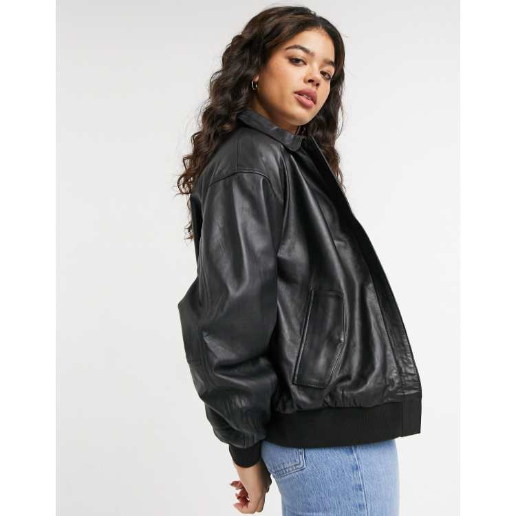 ASOS DESIGN leather bomber jacket in black ASOS