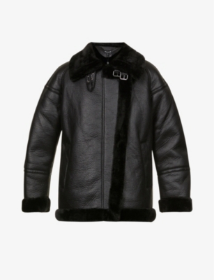 Whistles faux fur biker shop jacket black, Whistles Agnes Faux Fur Trim Leather Jacket Black shop