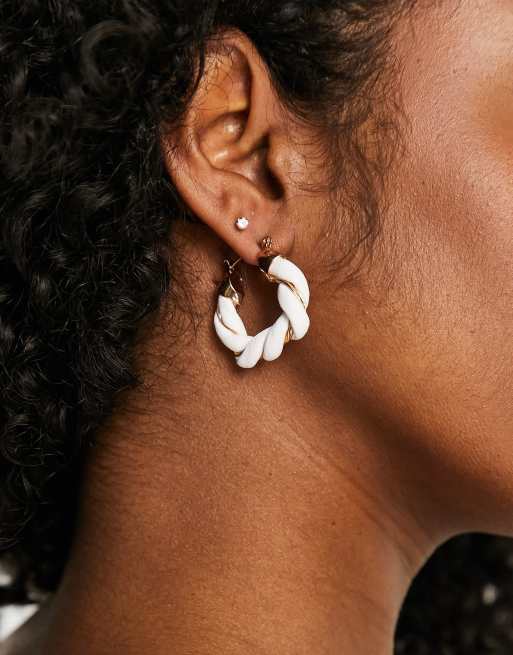 Glamorous chunky twist hoop earrings in white and gold ASOS