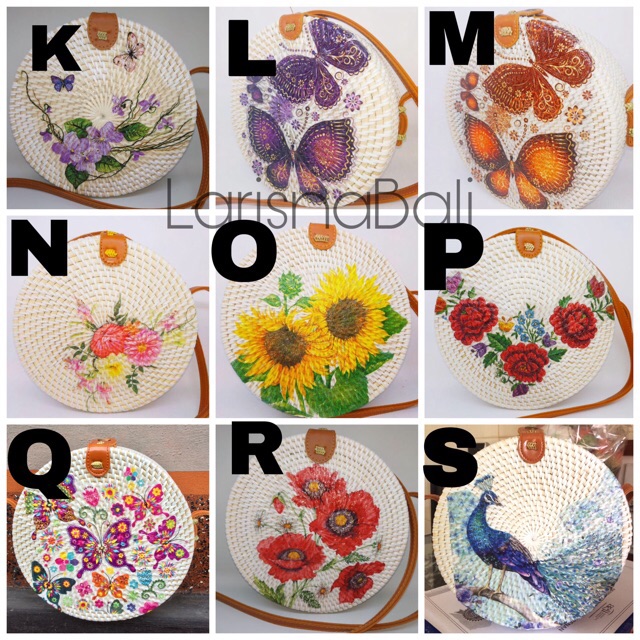 PUTIH Original White Round Rattan Bag Various Painting Decoupage