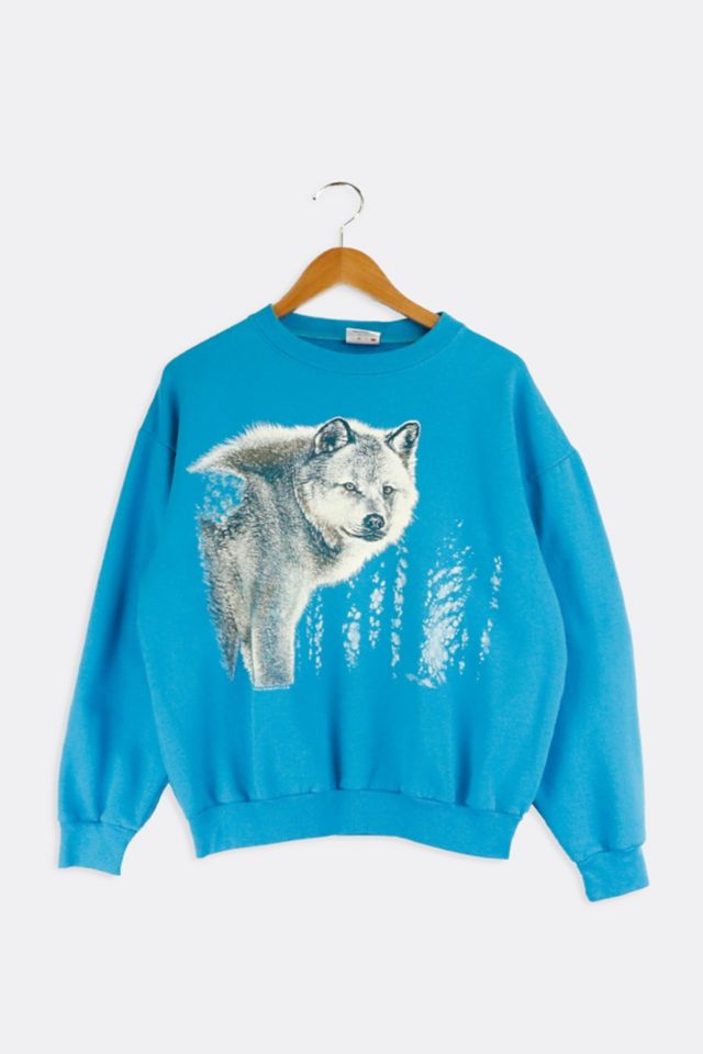 2nd Base Vintage Wildlife Wolf Crew Neck Sweatshirt
