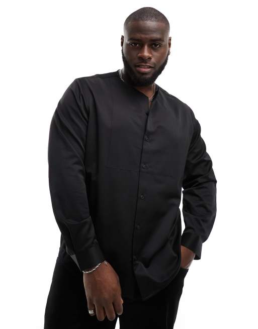 Chemise shop sans col, ASOS DESIGN Chemise sans col coupe classique Noir ASOS shop