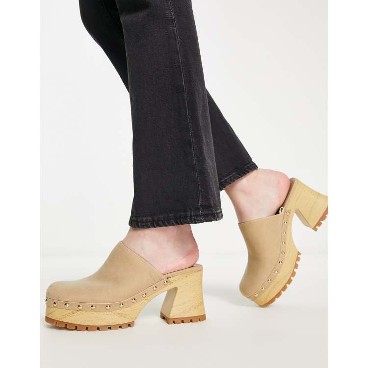 Wooden shop heel clogs, PORTIA Vegan Leather Clogs Black shop