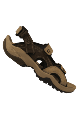 Buy WOODLAND Khaki Mens Leather Velcro Closure Casual Sandal