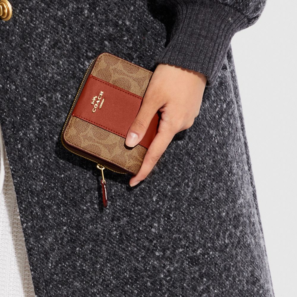 Coach Small Wallet In Colorblock Signature Canvas Tan Chalk Balilene