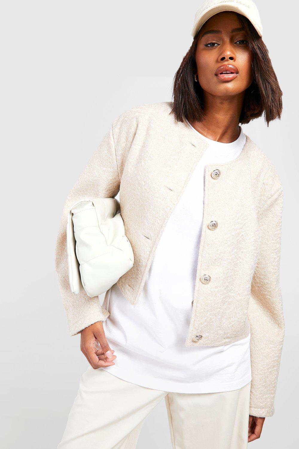 Women s Collarless Textured Jacket Boohoo UK