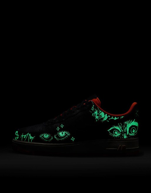 Nike Air Force 1 07 Baskets phosphorescentes Noir et orange