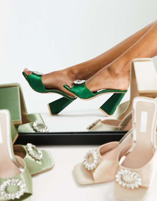 Be Mine Wide Fit Mercyy mules with embellishment in emerald ASOS