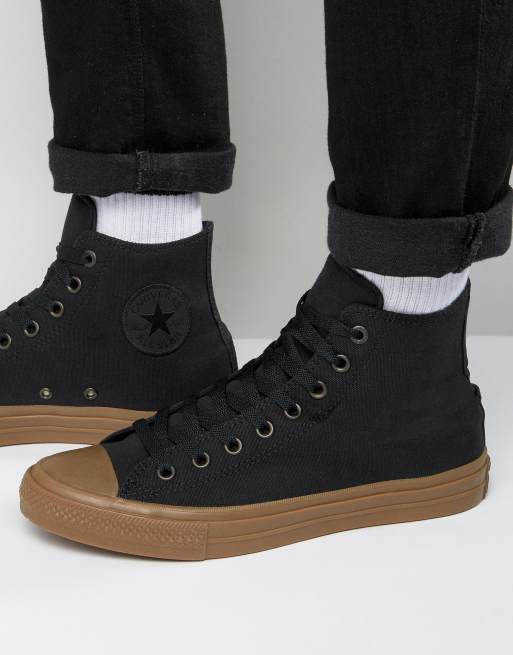Converse Chuck Taylor All Star II Hi Plimsolls With Gum Sole In Black 155496C