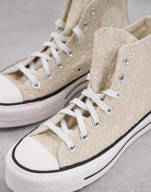 Converse Chuck Taylor Lift Hi sneakers in beige broderie anglaise