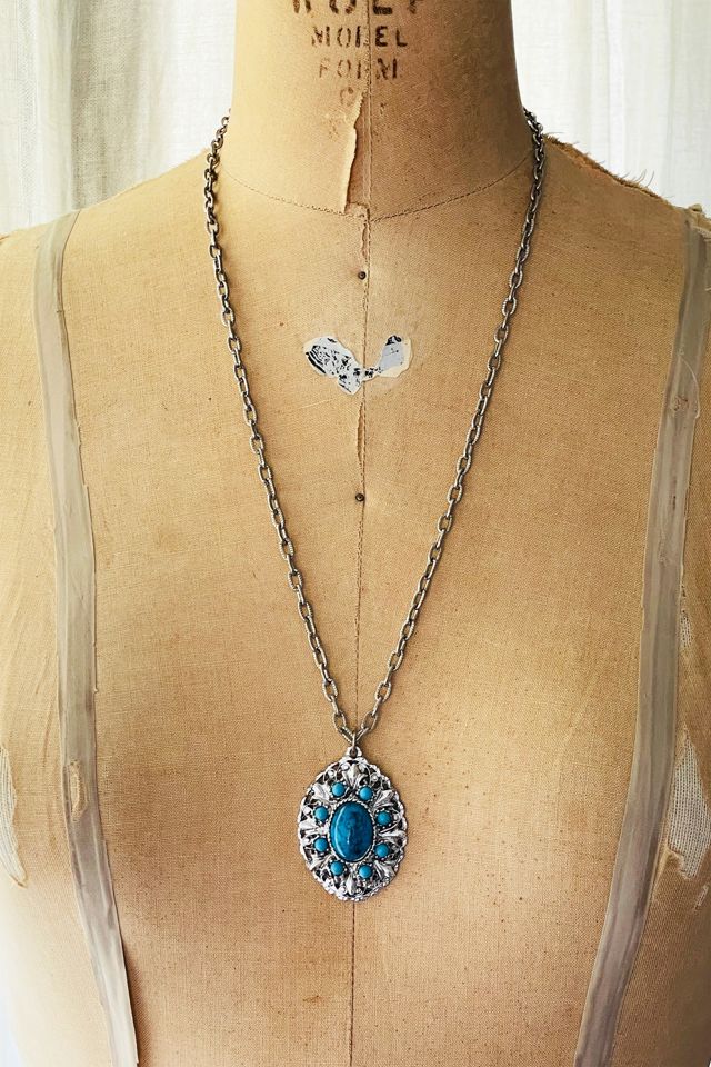 Faux shop turquoise necklace, Vintage Faux Turquoise Pendant Necklace Selected by FernMercantile shop
