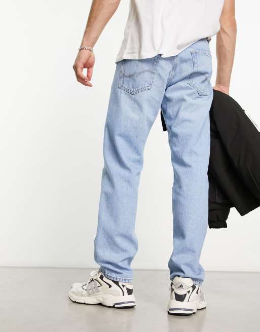 Jack Jones Intelligence chris loose fit jeans in light stone blue wash with rips