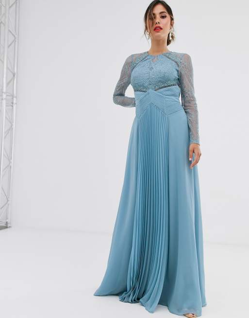 ASOS DESIGN lace and pleat long sleeve maxi dress