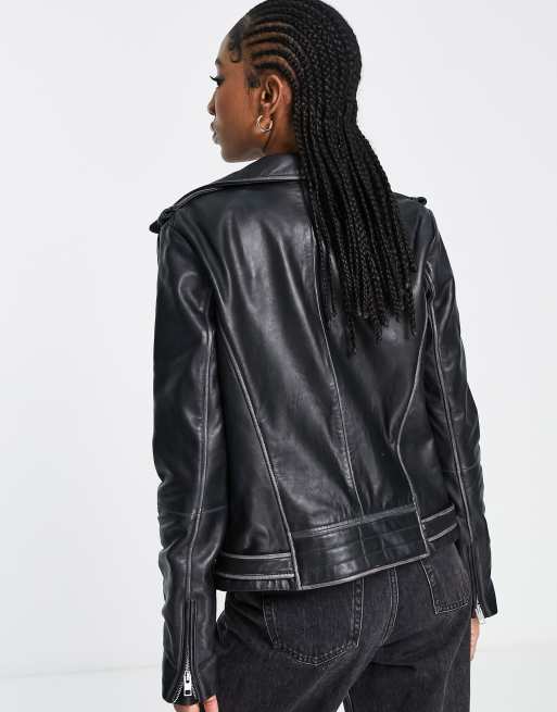 Barney's originals leather biker shop jacket with shoulder detail, Barneys Originals Beppe leather jacket with ribbed detail ShopStyle shop