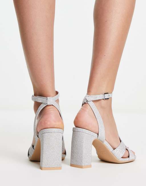 New look silver glitter block heel shop sandals, Wide Fit Silver Glitter 2 Part Mid Stiletto Heel Sandals New Look shop