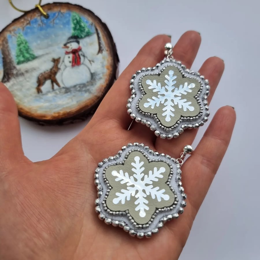 Large Snowflake Earrings Stud Earrings Handmad Folksy