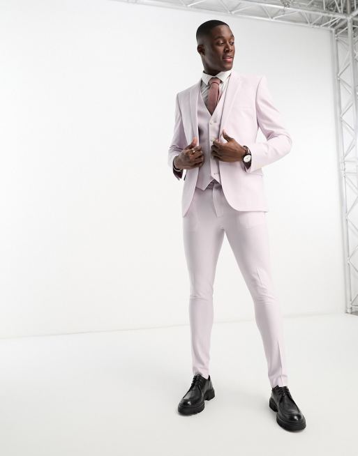 ASOS DESIGN wedding super skinny suit jacket in pale pink
