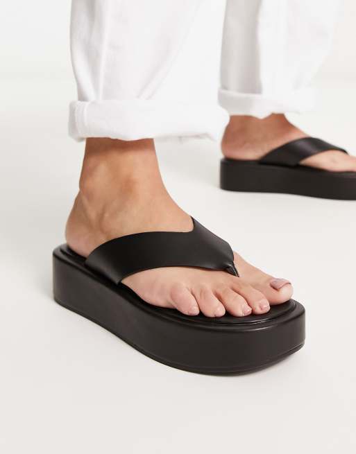 Slide shop thong sandals, schuh tonya flatform toe thong sandals in black shop