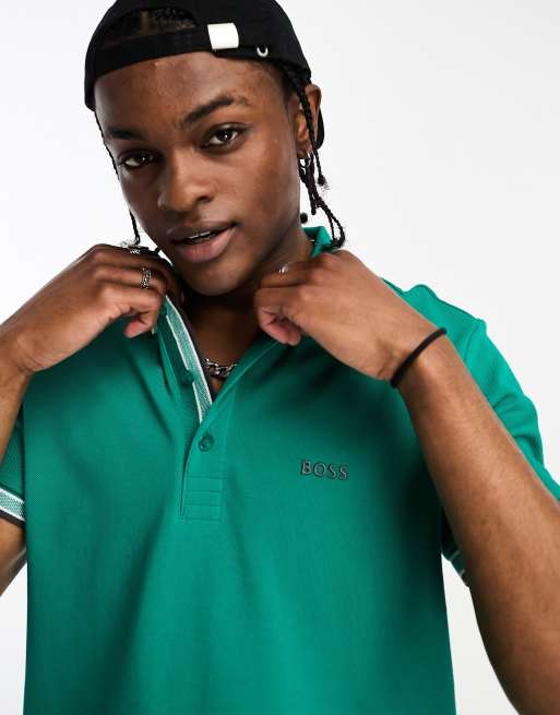 Dark green hugo boss shop polo, BOSS Green Paddy polo in dark green ASOS shop