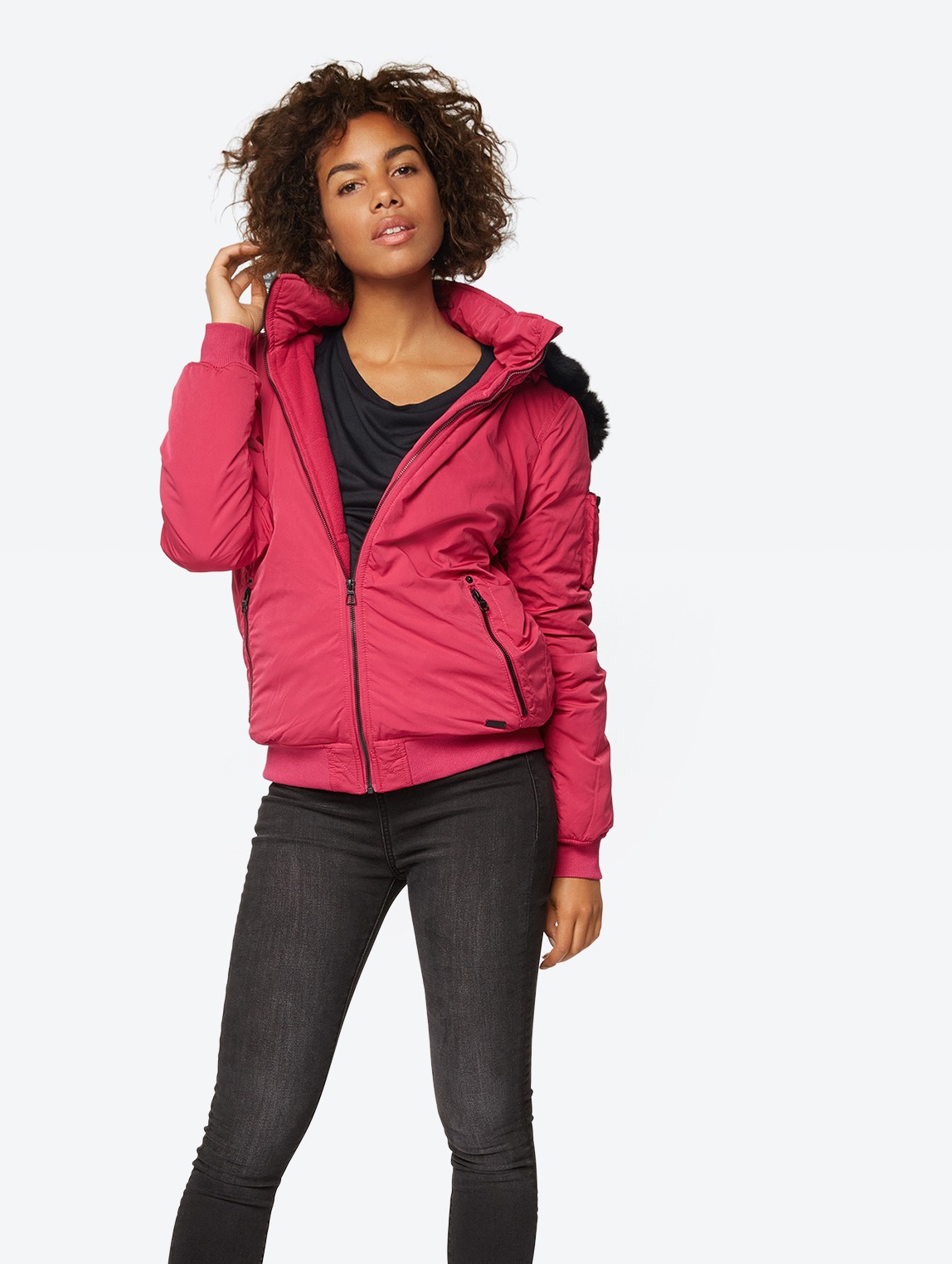 Bench Bomber Jacket With Removable Fur Hood Pink StreetO