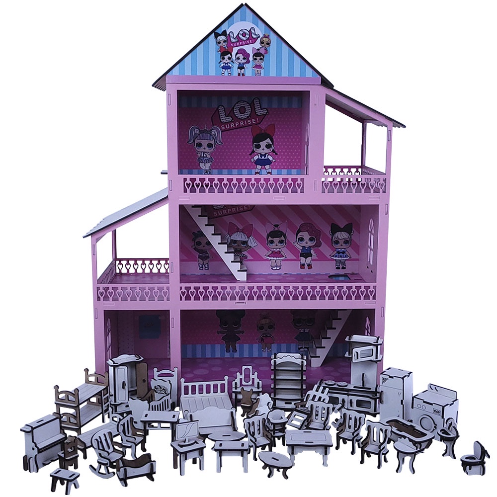 Casa Casinha De Boneca Polly Lol Pintada 43 M veis Brancos