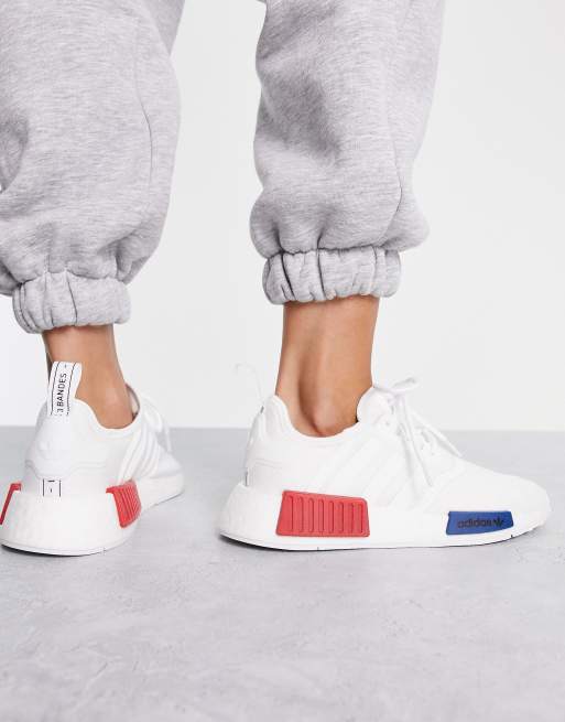Adidas nmd r1 dames shop blauw, adidas Originals NMD R1 Sneakers in wit met rode en blauwe vlakken shop