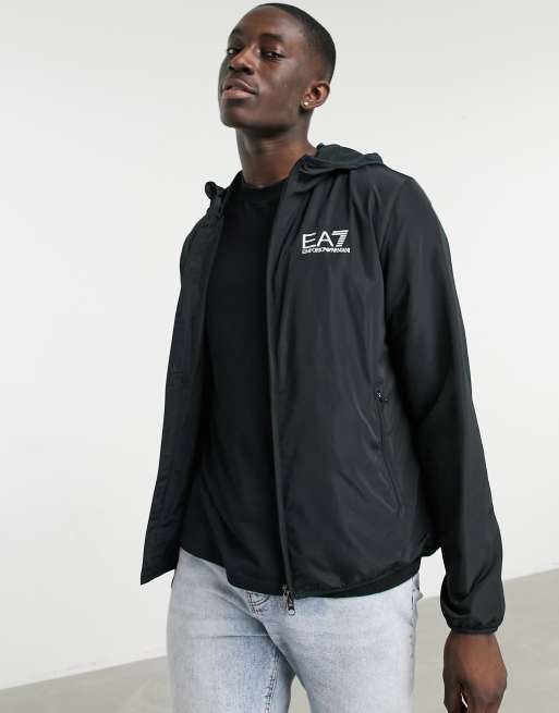 Armani EA7 Core ID hooded logo jacket in black ASOS