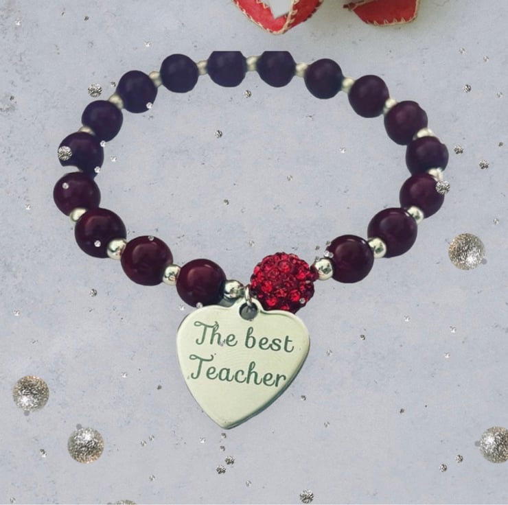 Best teacher stretch beaded red bracelet gift for teacher end of term gift