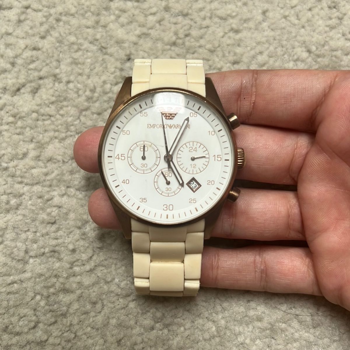 Emporio armani shop watches white, Rel gio Original Feminino Emporio Armanj Emborrachado Off White shop
