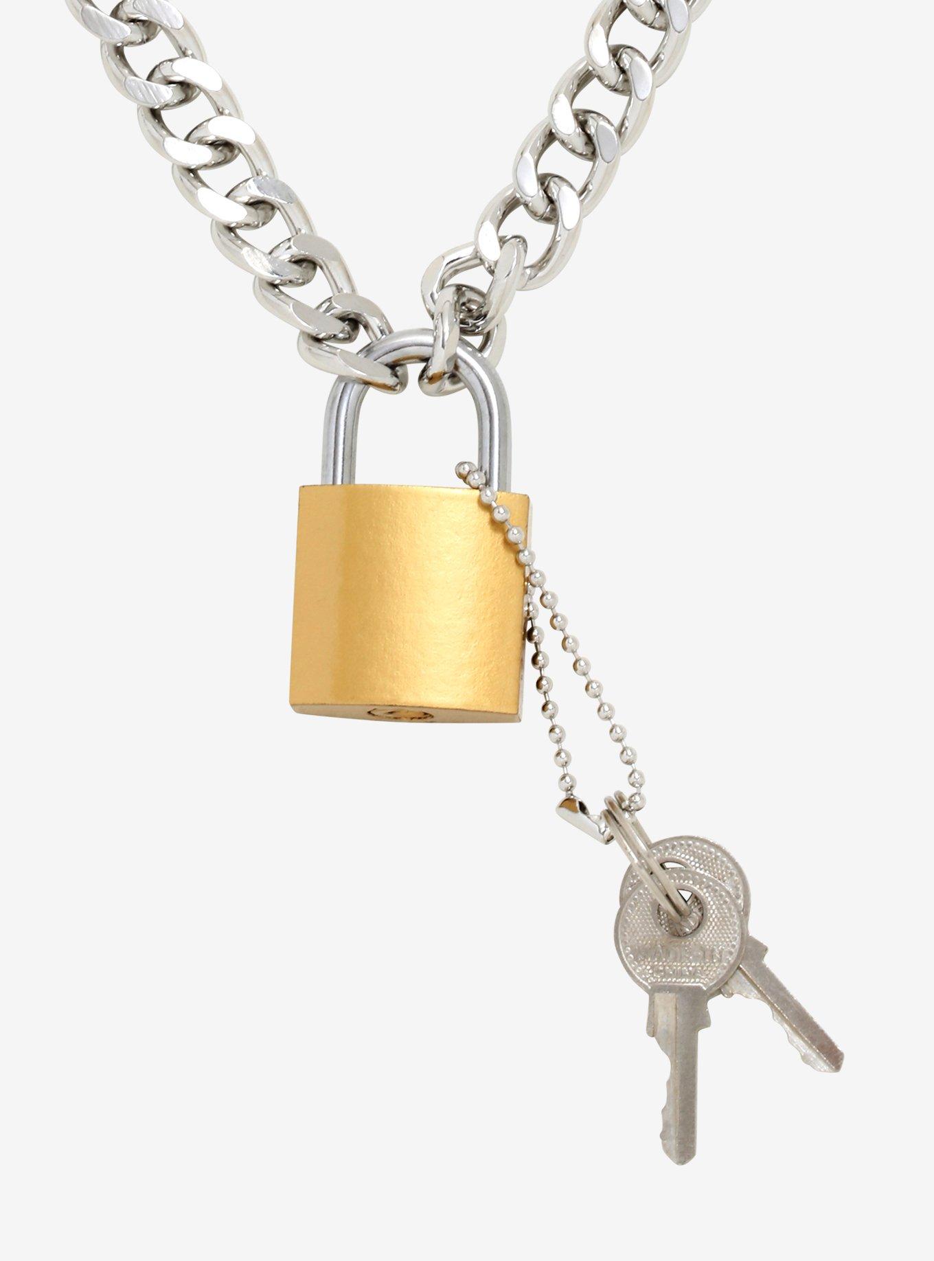 Amazon Yheakne Punk Lock Key Pendant Necklace Gold Padlock