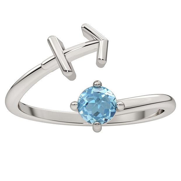 Sterling Silver Blue Topaz Sagittarius Zodiac Sign Bypass Ring