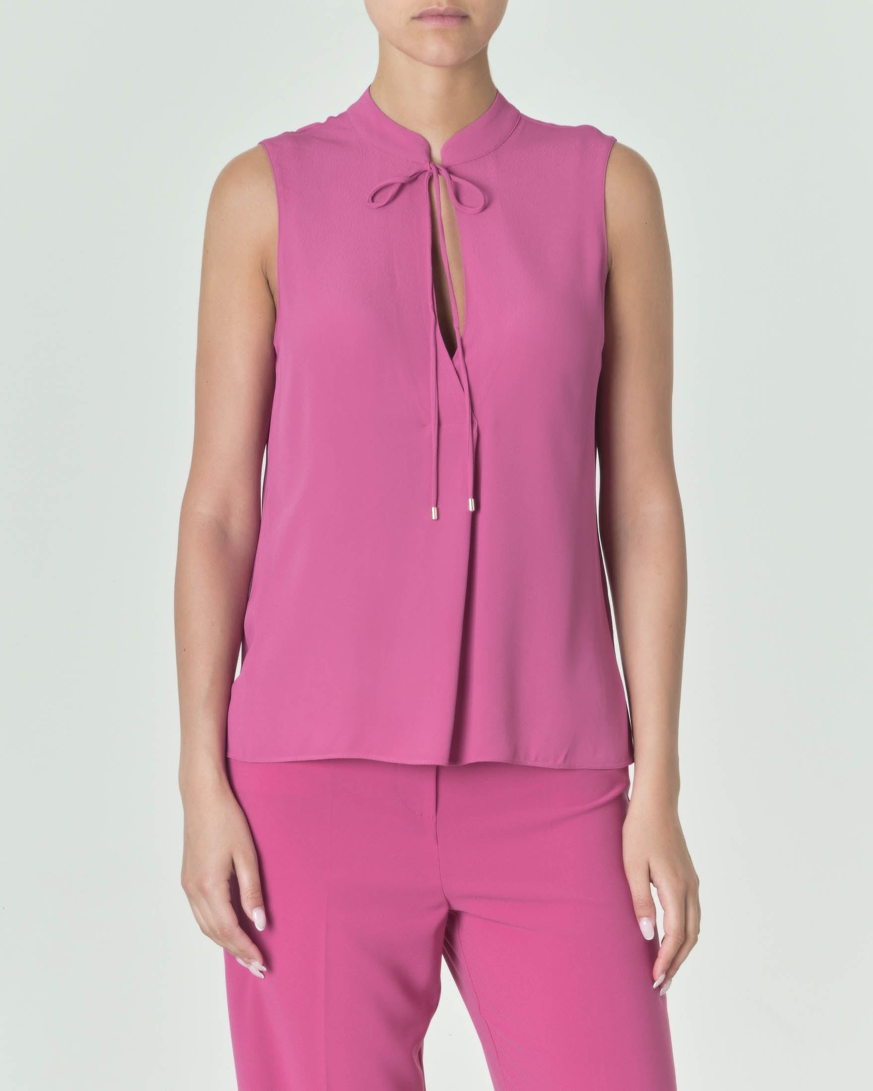 Blusa senza maniche fucsia con colletto a listino e scollo a V con