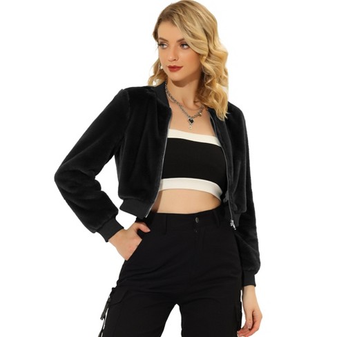 Allegra K Women s Winter Fluffy Zipper Up Cropped Faux Fur Bomber