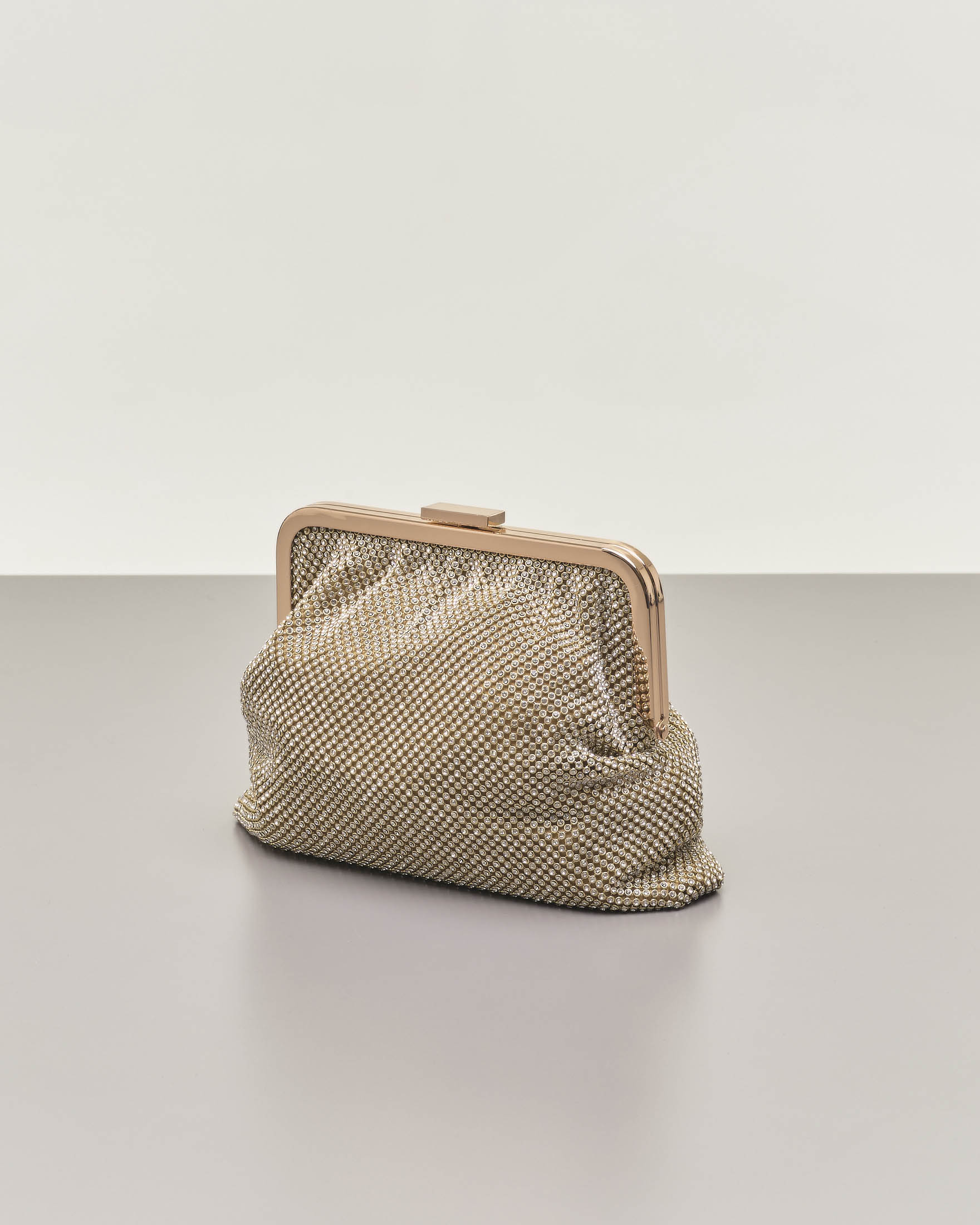 Borsa in maglia di strass color oro con chiusura in metallo e