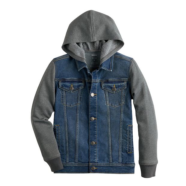 Boys hooded shop denim jacket, Little Boys Hooded Denim Jacket Dark Wash shop