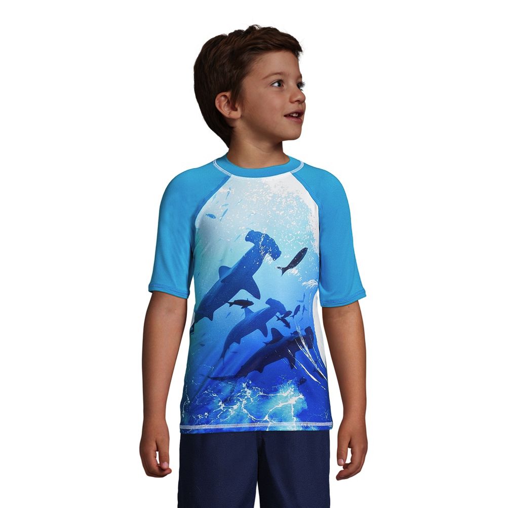 Boys Short Sleeve Crew Neck Graphic UPF 50 Swim Rash Guard Lands