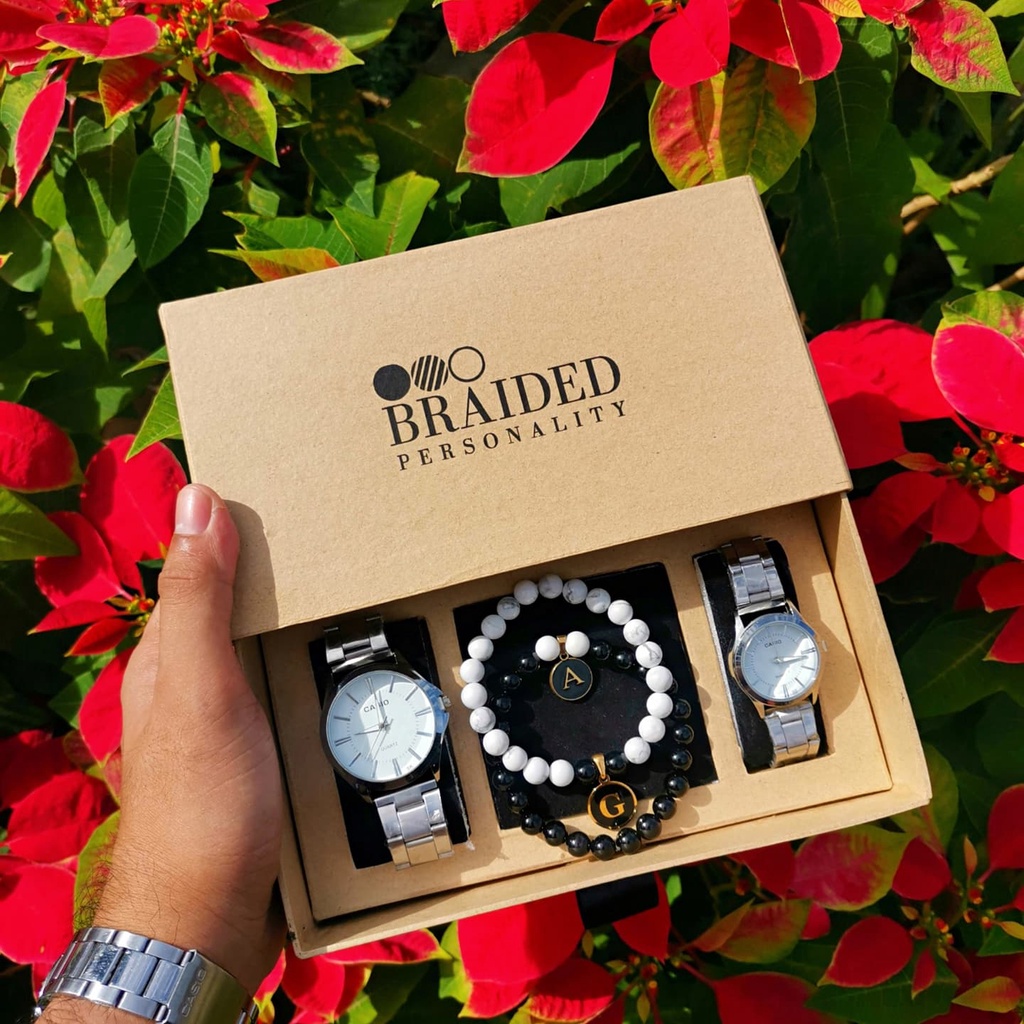 Couple Watch and Couple Bracelet with Letter Pendant Gift Set