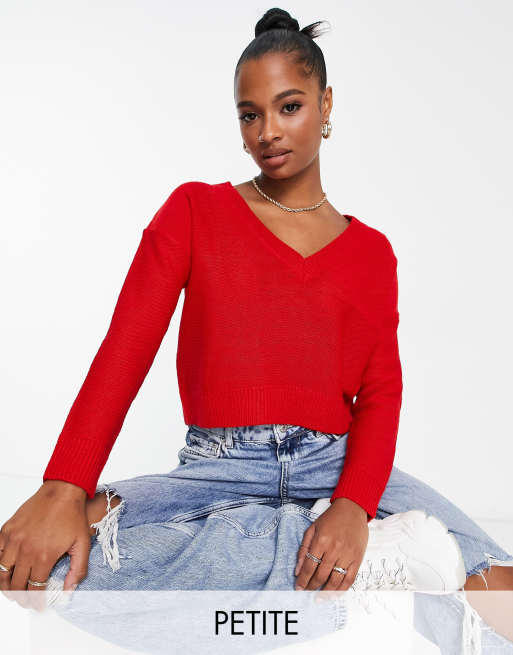 Brave Soul Petite kansas v neck jumper in red ASOS