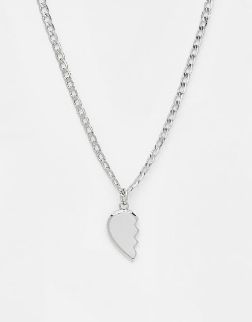 ASOS DESIGN necklace with broken heart pendant in silver tone