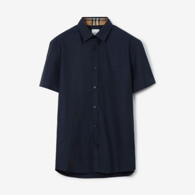 Gray shop burberry shirt, Stretch Cotton Shirt in Navy Men Burberry Official shop